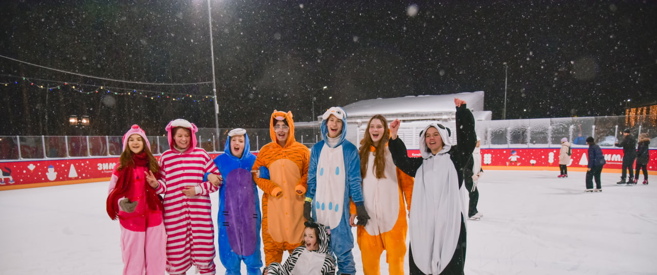 Бесплатное массовое катание на коньках для студентов. При предъявлении студенческого билета каток бесплатный.