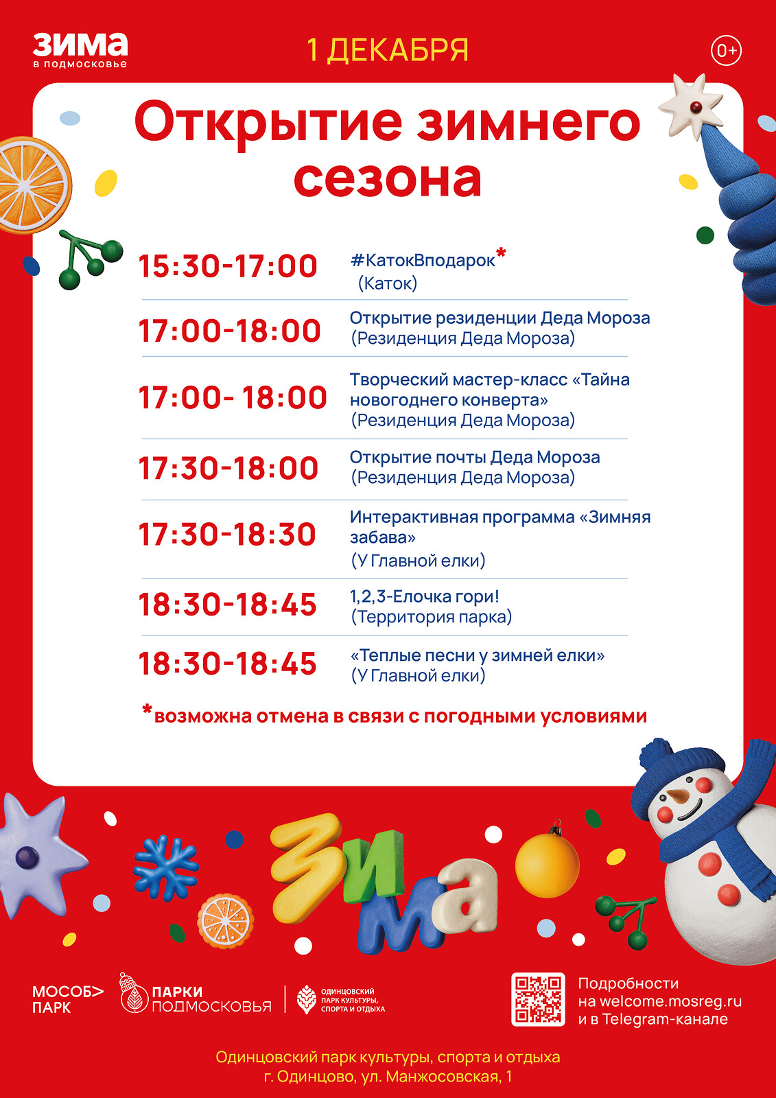 - Концерт-поздравление посетителей с открытием зимнего сезона. Завершит вечер музыкальная программа, полная радости и веселья, которая подарит ощущение настоящего новогоднего чуда.