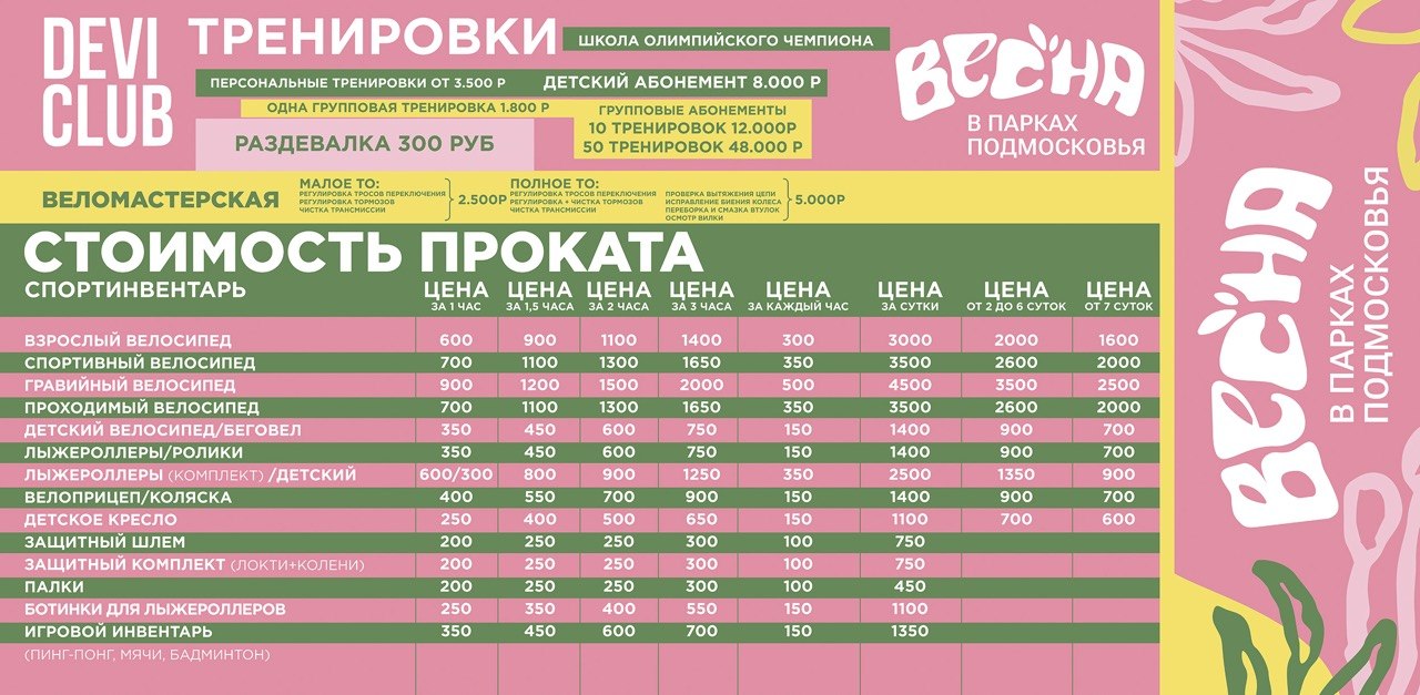 В Одинцовском парке культуры спорта и отдыха Devi Club предлагает: