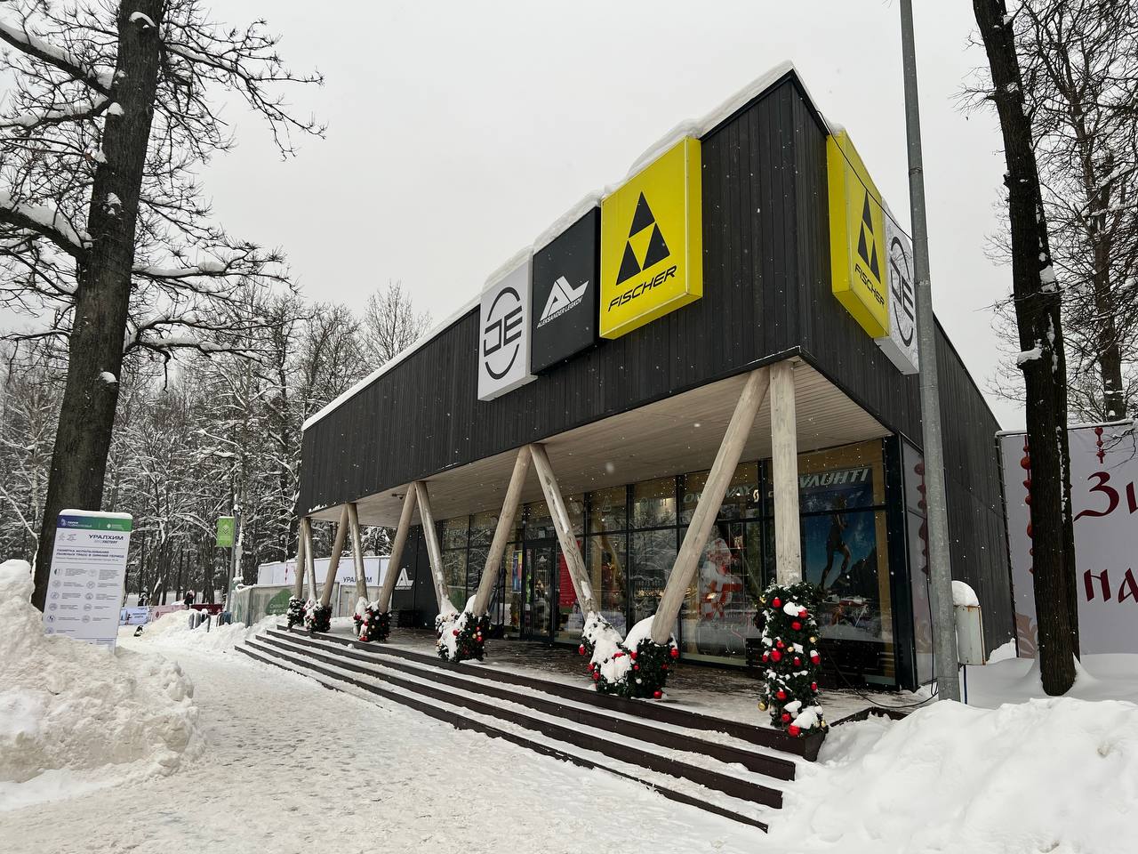 В экип. центре им. А. Легкова представлена экипировка и инвентарь для лыжных гонок, биатлона, легкой атлетики, триатлона, фитнеса, скандинавской ходьбы, а также спортивное питание, напитки ведущих брендов и сопутствующие товары для активного отдыха в парке. Широкий ассортимент спортивной одежды, обуви, инвентаря, велосипедов и аксессуаров от ведущих брендов в спортивной индустрии: Fischer, Loffler, One Way, Halti DE, Northug, Lill Sport, Spine, CEP, Scott, Nutrend, Squeezy, Neon(Al).