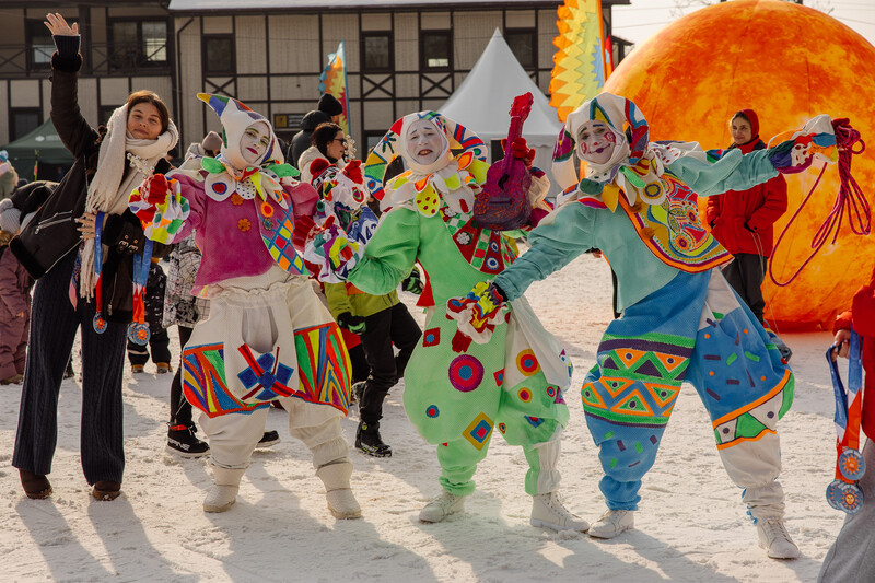- красочные ходулисты и громкие возгласы зазывал создадут атмосферу праздника с первых минут;