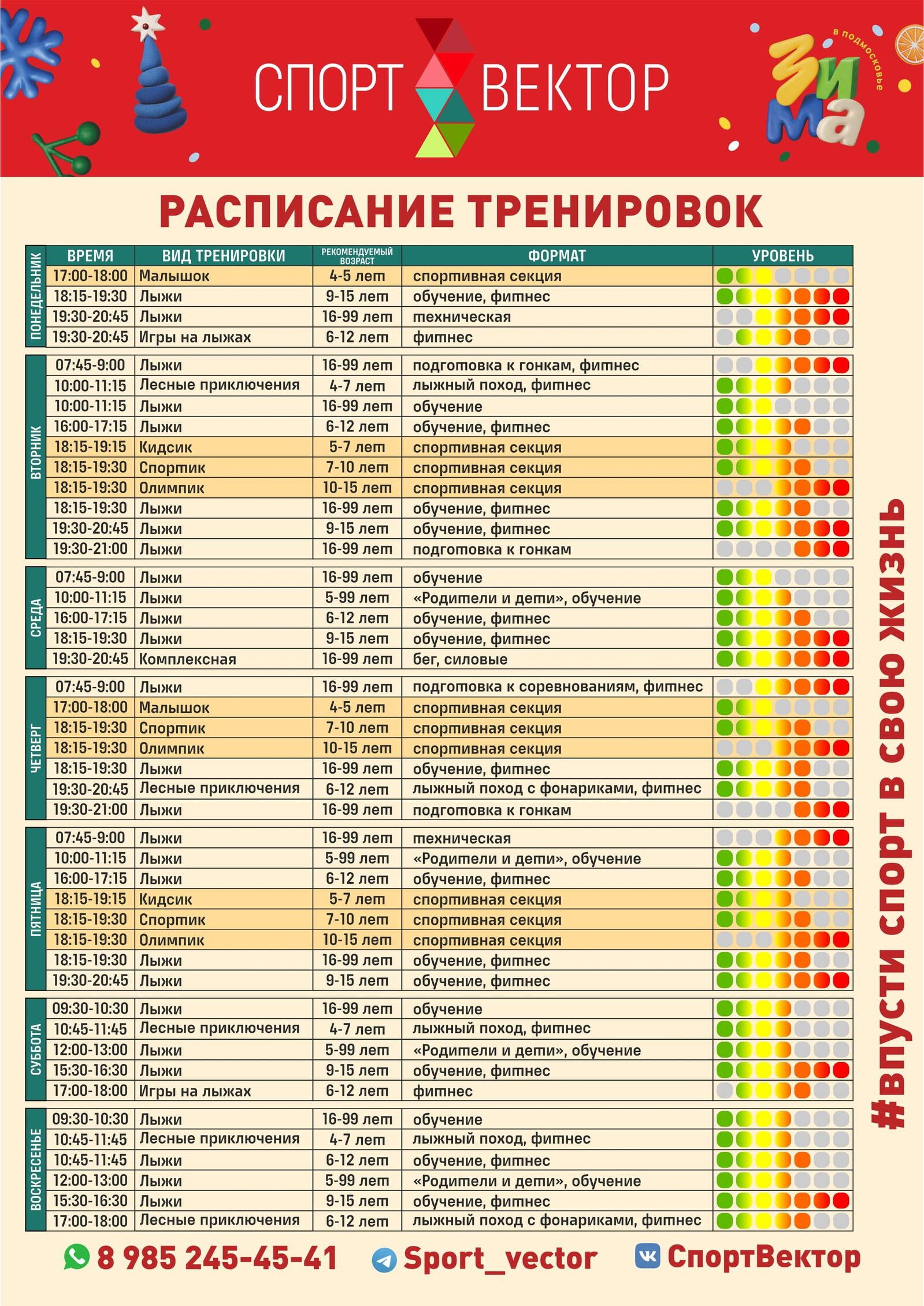 База СпортВектор работает ежедневно с 9:00 до 21:00 (раздевалка и тренировки круглосуточно)